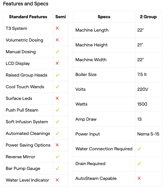 Semi-Automatic: The Appia Life Compact Semi-Automatic is an extremely simple machine to operate. Using an on/off switch the barista gets full control of the extracting time in relation to coffee blends. While the internal compounds make it more than capable of delivering high quality espresso, especially at the hands of an experienced barista.