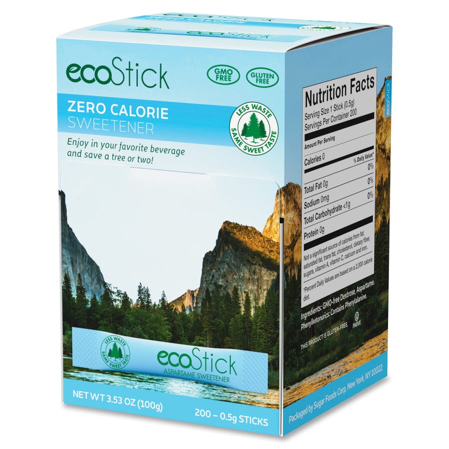EcoStick's sweeteners have equal sweetness to the traditional paper packet of a zero calorie sweetener. It's compact and sleek packaging enhances your tabletop, and is also better for the environment since it uses 46% less paper.