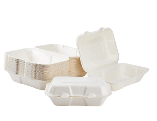 Karat Compostable White Bagasse Hinged Container, 9" x 6"