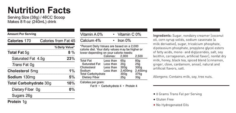 Serving Size: 38g for an 8 fl oz drink