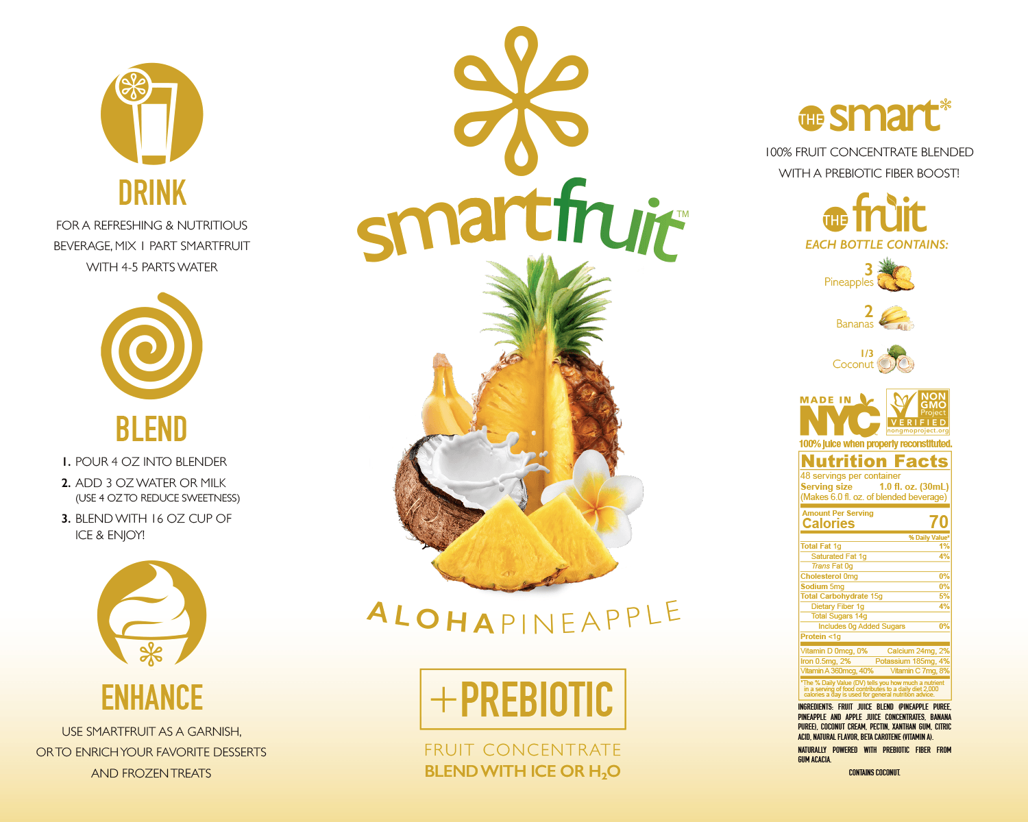 Smartfruit Aloha Pineapple Puree delivers the rich, creamy flavors and textures of a tropical paradise to smoothies, cocktails, teas, and more!