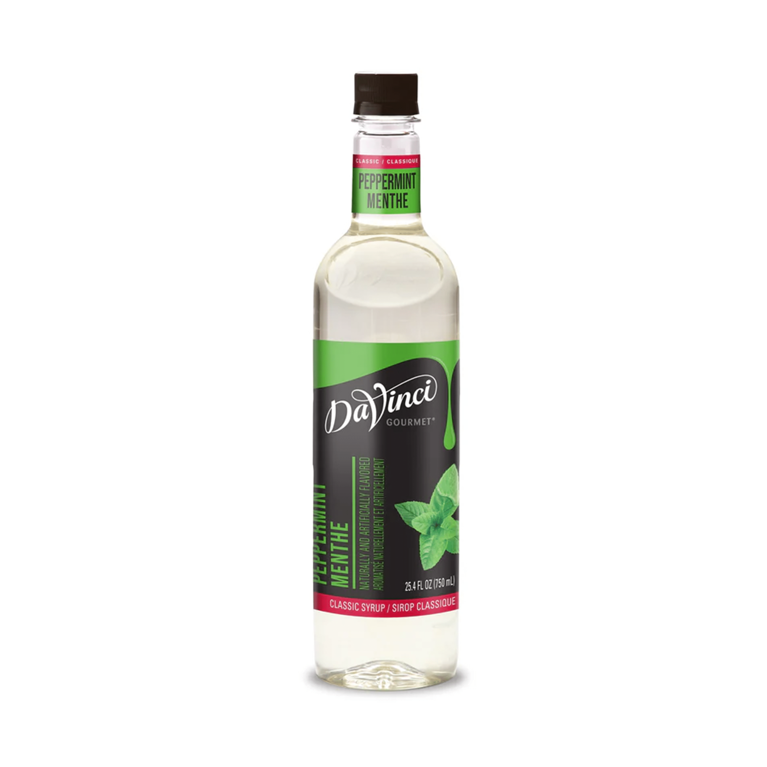 Enliven your creations with the cool minty flavor of this delicious peppermint syrup from DaVinci Gourmet. We craft our syrups with the highest-quality ingredients for products professional baristas and mixologists rely on to create great-tasting beverages. Made with pure cane sugar, this delicious syrup features balanced sweetness and aromatic, invigorating peppermint flavor. For smooth results, we specially formulate our syrup to mix quickly and easily in hot or cold beverages and resist curdling dairy products. This refreshing DaVinci Gourmet Classic Peppermint syrup makes a delicious addition to a variety of beverage and culinary applications Add to milkshakes or hot cocoa for a favorite seasonal flavor. Or add a fresh minty twist to your cocktails and mocktails creations. For unique custom flavors, combine with other delicious DaVinci Gourmet products. Our Classic Peppermint syrup is Kosher-Pareve certified This DaVinci Gourmet Classic Peppermint flavored syrup is available in a 750 mL plastic bottle.