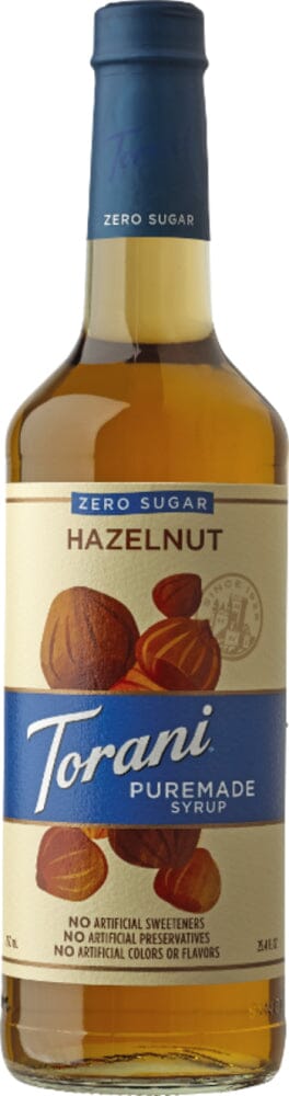 Torani Puremade Zero Sugar Hazelnut Syrup 750mL Glass Bottle