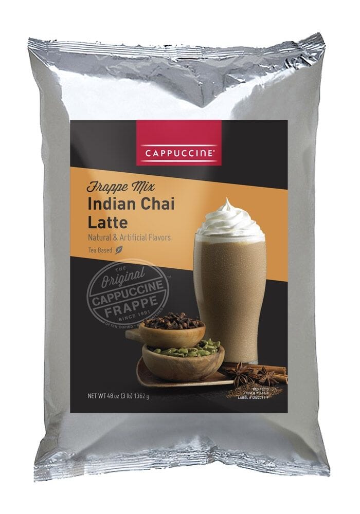 Savor this black tea latte spiced up with cardamom, ginger, cloves, Indian spices and sweet honey! Cappuccine Indian Chai tea contains no hydrogenated oils. 3 pound bulk bag.