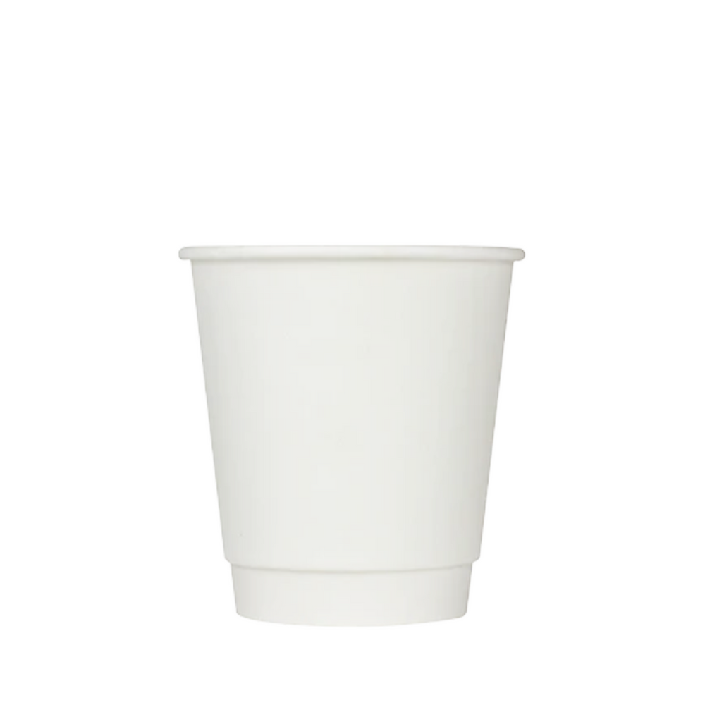 Insulated hot, white paper cups. Extra layer of coverage keeps cup warm, not hot, and reduces need for cup jackets.
