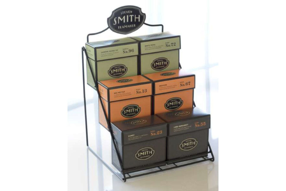 Wire rack holds 6 cartons of Smith Teas for display.